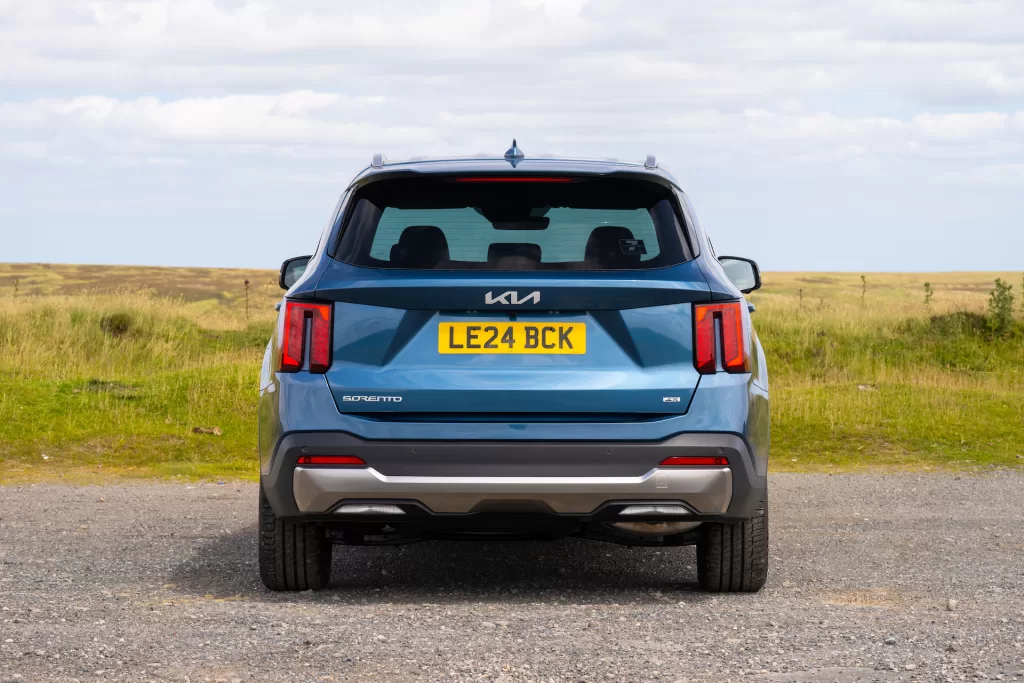 In profile, the Sorento looks solid but clean — a proper SUV stance with short overhangs and crisp detailing. My test car’s 19-inch alloys fill the arches neatly, and the dark chrome trim around the windows gives it a premium edge. Round the back, the redesigned taillights now mirror the vertical theme from the front, joined by a neat strip across the tailgate and a revised skid-plate design.