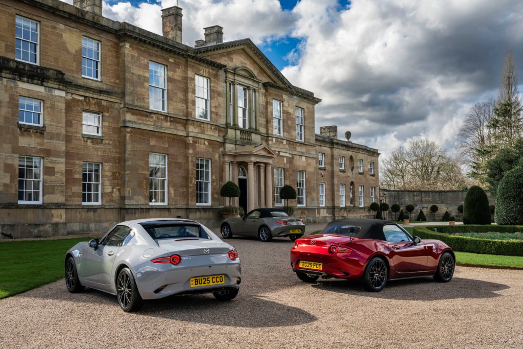 The 2025 MX-5 range features soft-top (Roadster) and RF (Retractable Fastback) variants, with three trim levels: Prime-Line, Exclusive-Line, and Homura.