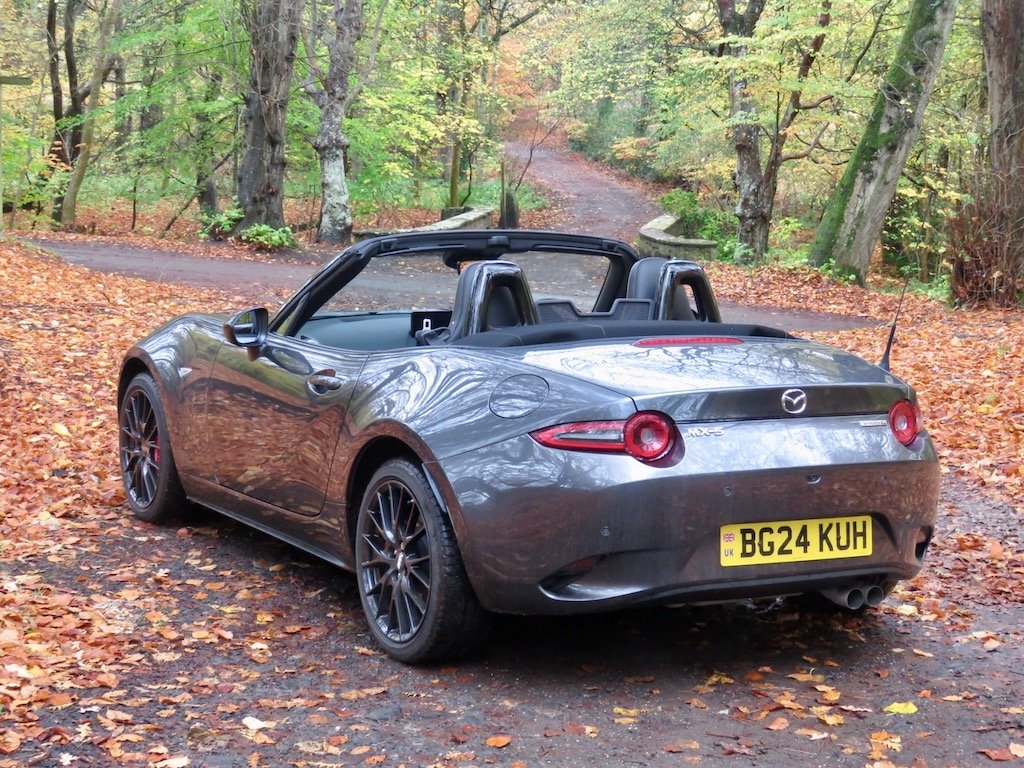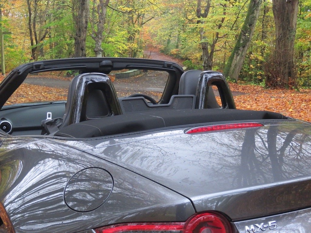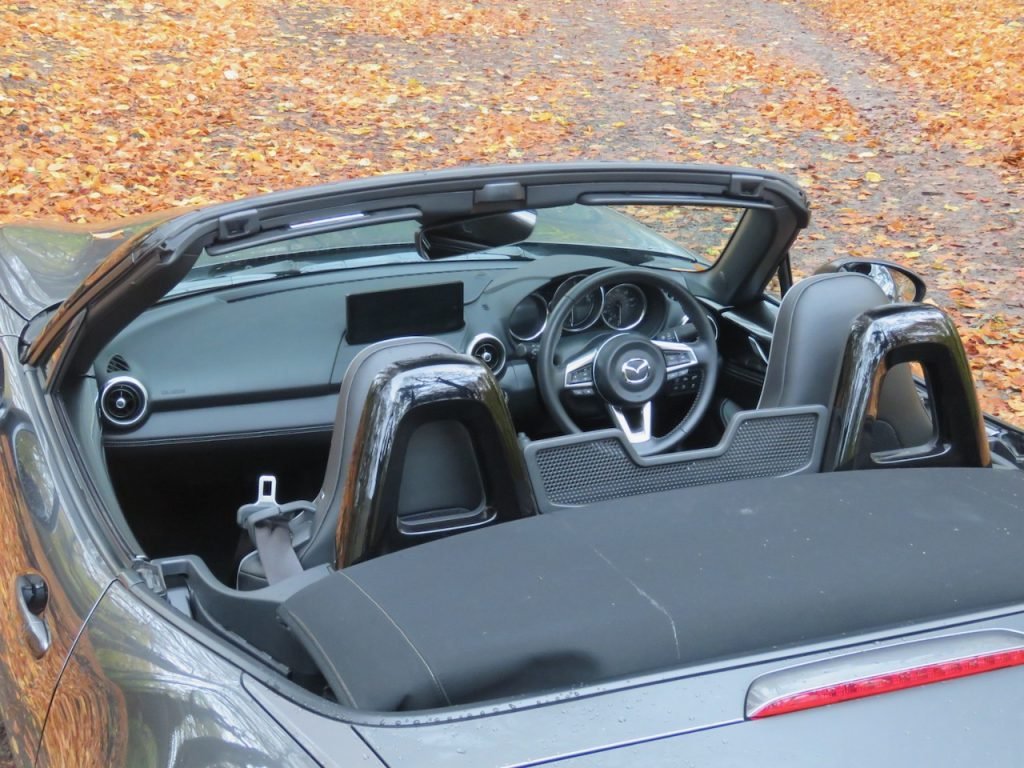 Even boot space – while not vast – is usable for weekends away. The manual fabric roof is featherlight to operate. You don’t even have to manually drop the windows slightly when putting the roof up or down – like I have to on the NC – this is now done automatically as soon as you unlatch the roof.