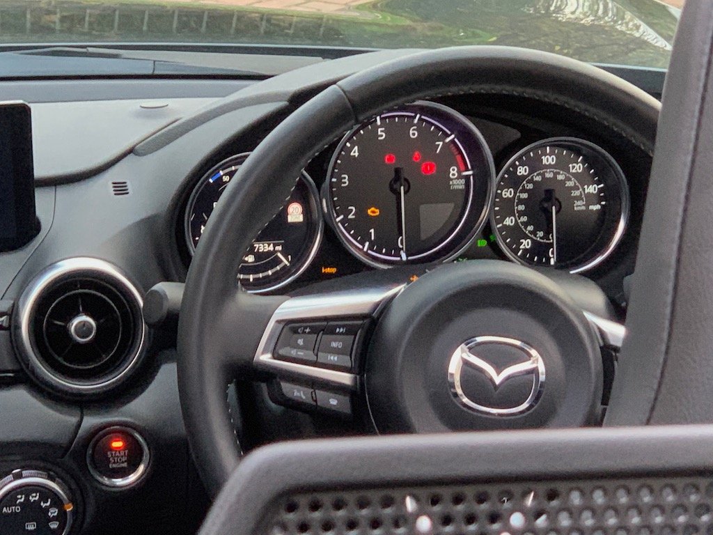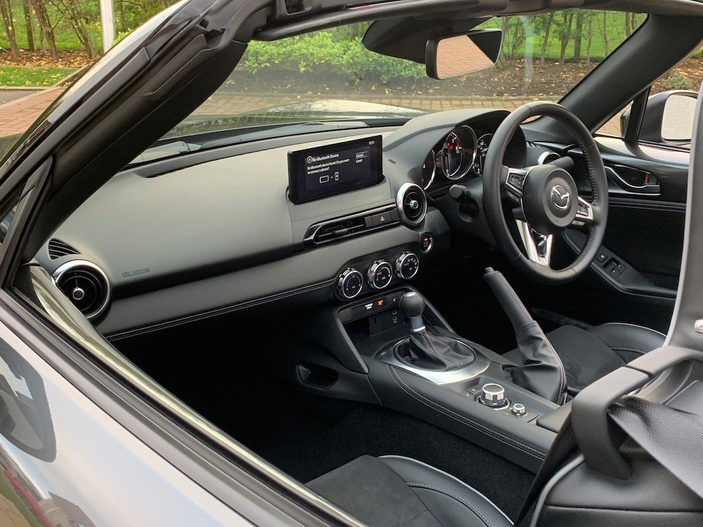 Step inside the MX-5 and it’s clear this is a driver’s car first and foremost. The driving position is low, snug, and perfectly judged – you wear this car more than you sit in it. Even more so than the NC model which feels a tad roomier (and has a glove box!)