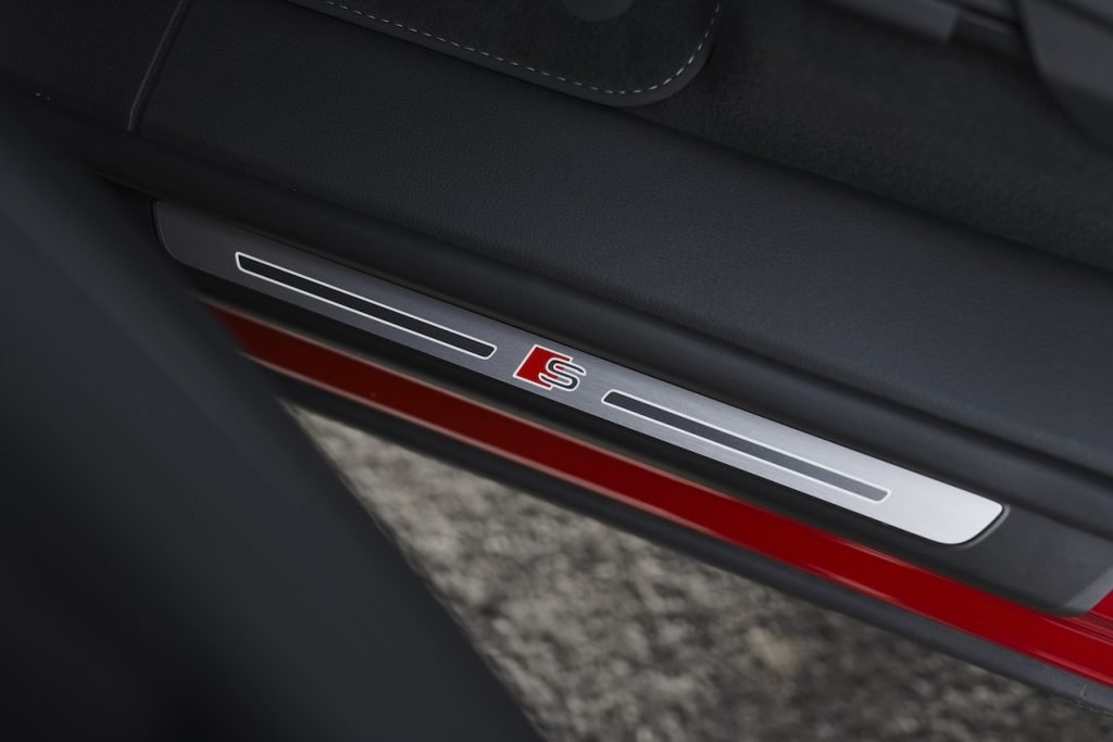 All the other Black Edition extras were present though, including anthracitegrey Audi rings, front and rear as well as the model name at the rear in black, black window trims and front and rear bumpers, black exhausts and door mirrors. There’s also Audi Beam which projects the S emblem on the ground when opening a door. Inside, there is polished Oak trim with a grey finish and a 3-spoke, flat-bottomed leather, sports steering wheel.