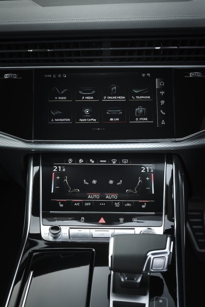 There’s also Audi’s 12.3-inch Virtual Cockpit, a 10-speaker, 180-watt sound system and 2 large touchscreens – 10.1inch at the top and 8.6-inch below it – featuring haptic feedback.