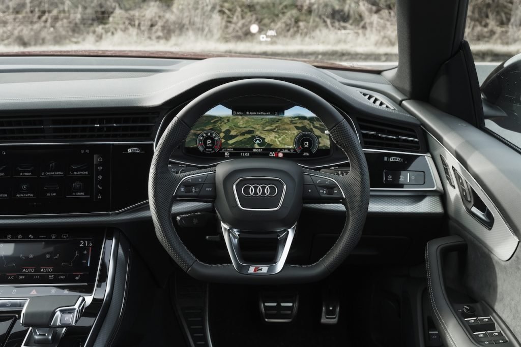The steering is as sharp as ever with the Quattro all-wheel-drive system providing a well-planted and confidence-inspiring experience that only gets unsettled if you push the 2.1-ton Q8 too hard through those tighter bends. The Q8 is good at keeping things together, but it can’t defy physics, despite the help of rear-wheel steering.