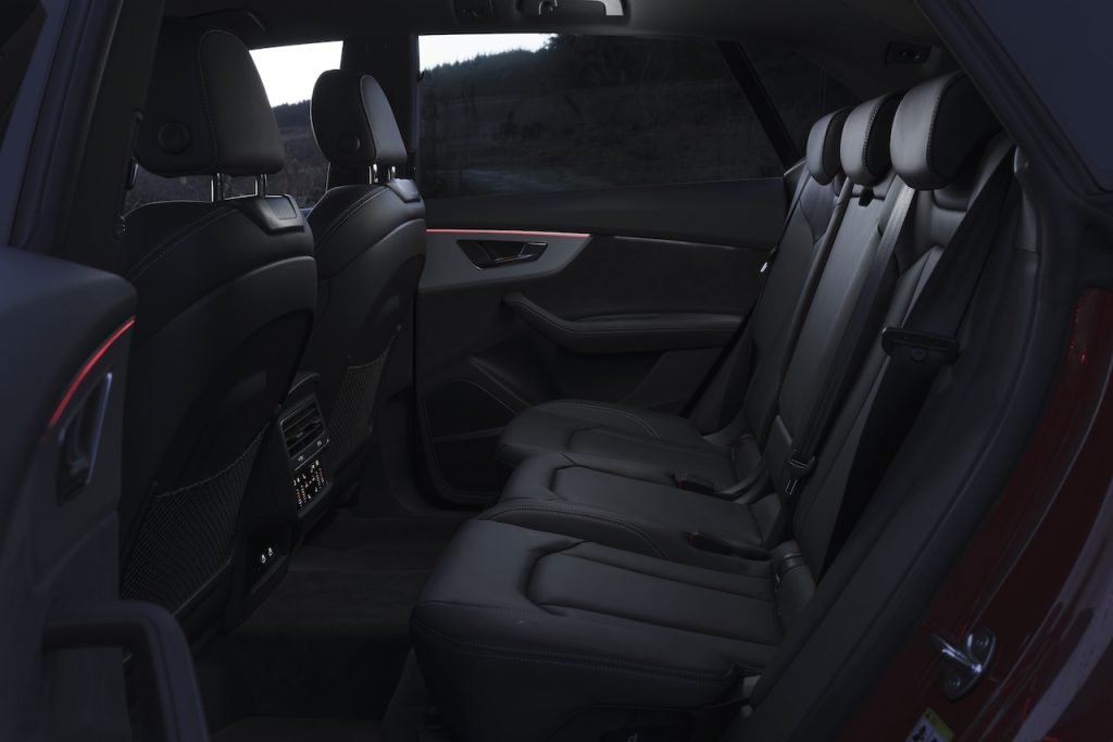Space in the rear is very generous, even for taller adults and because the Q8 is wide the centre seat isn’t the squeeze it would be in most other cars. A 6-footer can easily get comfortable in any of the 3 rear seats. Two kids can be easily separated enough to provide a large “no-hitting zone”.