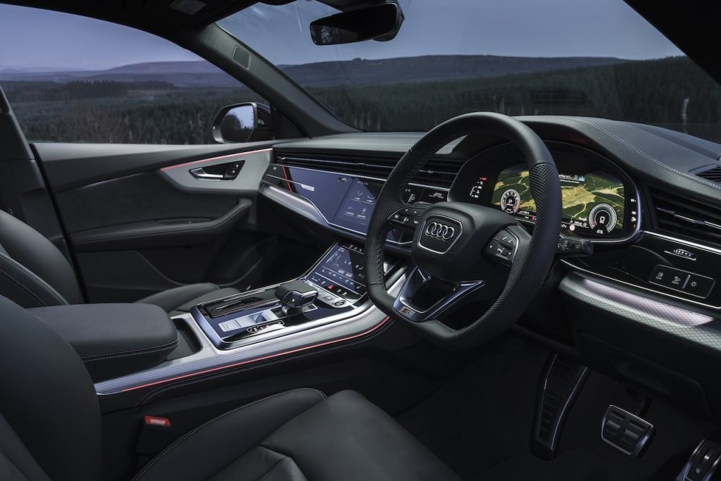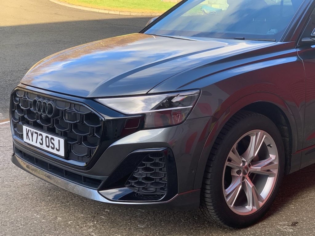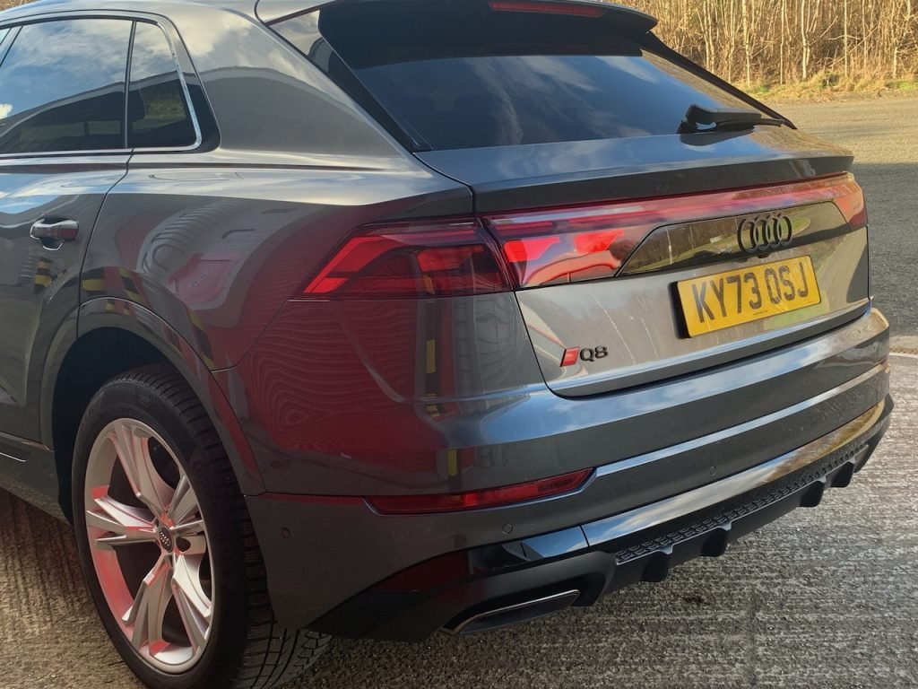 The recent facelift hasn’t significantly changed the Q8’s interior or mechanical components. However, the exterior has received subtle updates, such as a slightly beefier front grille, front side pods, and new OLED rear lights.
