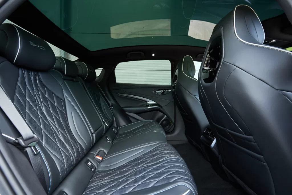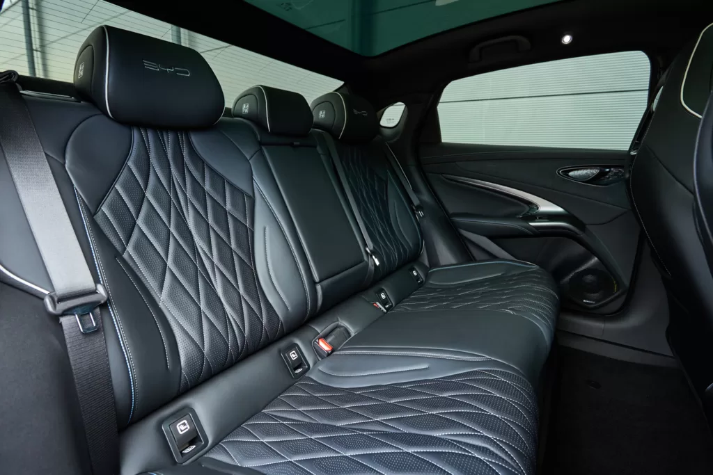 Swooping trim lines and diamond patterned, leather upholstery with contrasting stitching gives the Seal enough wow factor to make you smile and nod your head approvingly.