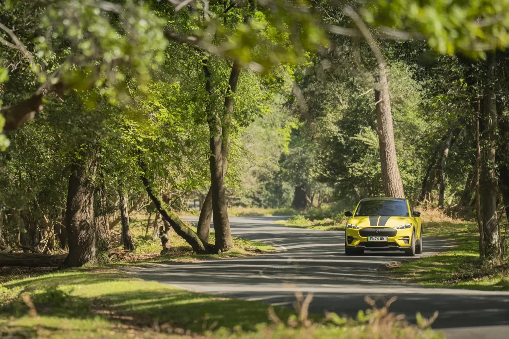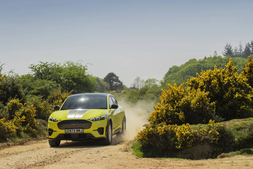Here’s where the Rally earns its stripes. On tarmac, it behaves much like the Mach-E GT — which is to say, quick, composed, and surprisingly agile for something tipping the scales at over two tonnes. The dual motors deliver instant shove, and the 0–62mph sprint in 3.6 seconds feels every bit as dramatic as the numbers suggest. There’s a satisfying surge when you floor it, accompanied by a faint whine from the motors — a reminder that this is performance without petrol.