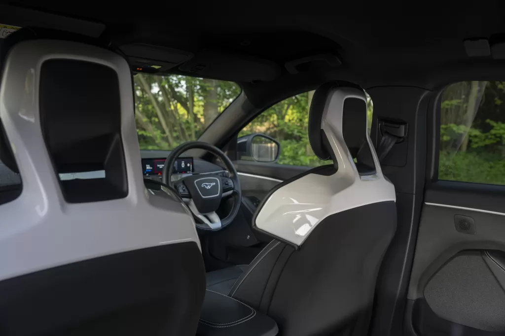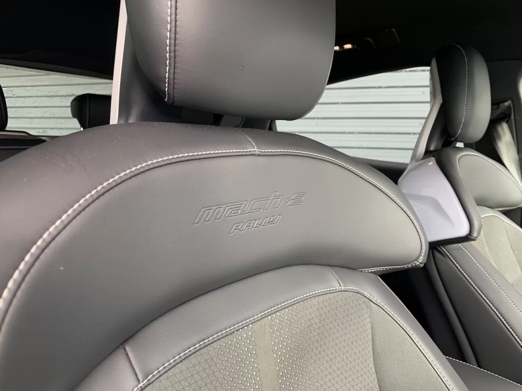 Step inside, and the Mach-E Rally feels reassuringly familiar — but with a few tweaks that hint at its adventurous side. The dashboard is dominated by the 15.5-inch SYNC 4 touchscreen, which remains one of the better systems in the EV world: crisp graphics, logical menus, and quick responses. Yes, there’s a learning curve if you’re coming from a button-heavy car, but Ford has done a decent job of keeping climate and audio controls accessible via shortcuts.