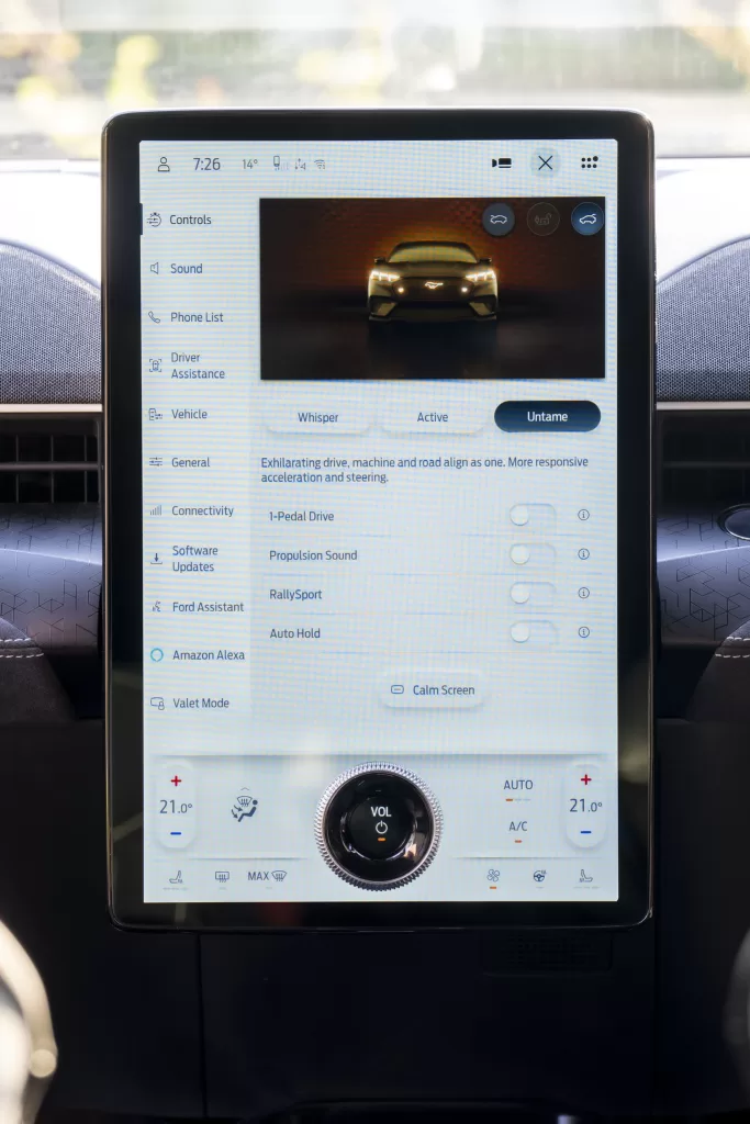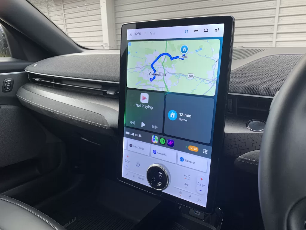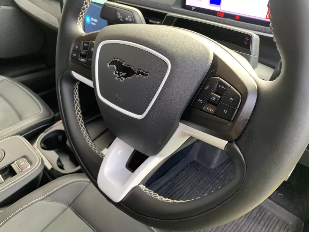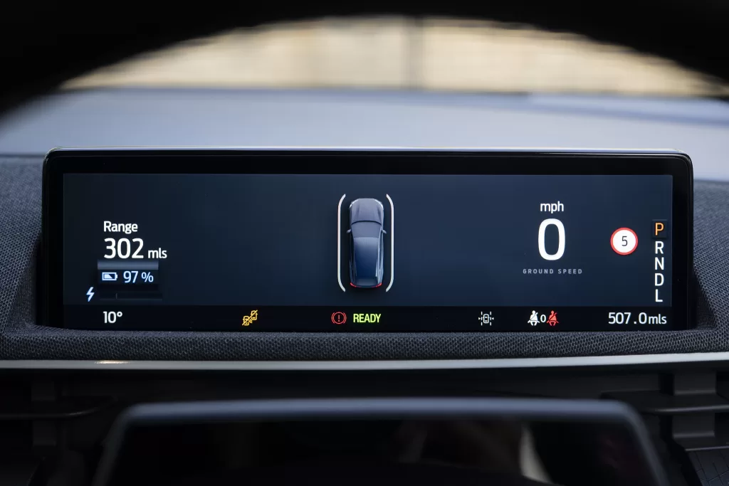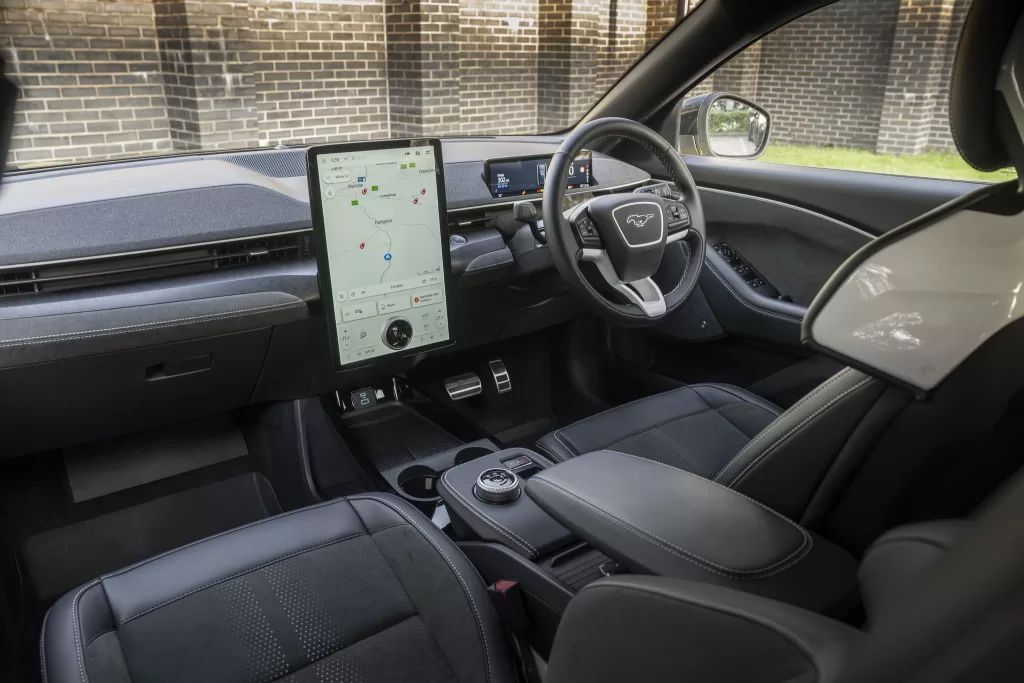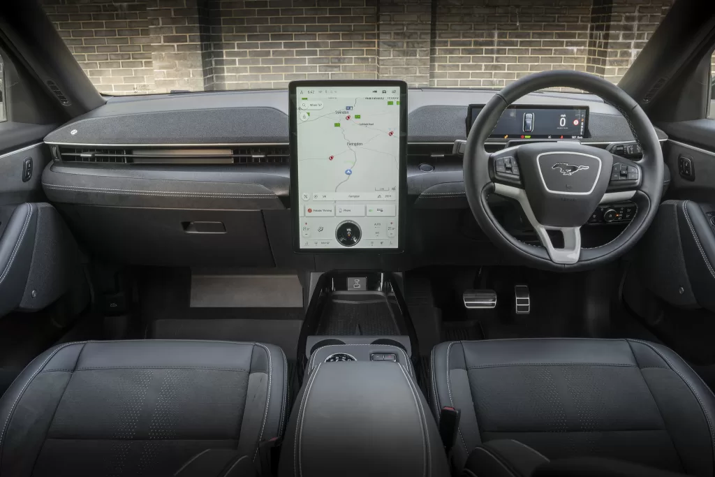 Ford’s SYNC 4 infotainment dominates the cabin — slick, responsive, and packed with features. Physical buttons? Minimal, but the essentials (volume, drive modes) are easy enough. Safety kit includes adaptive cruise, lane-keeping, and a 360-degree camera (handy when avoiding rocks). Over-the-air updates keep things fresh, and charging is quick: up to 150 kW DC, meaning 10–80% in around 36 minutes.