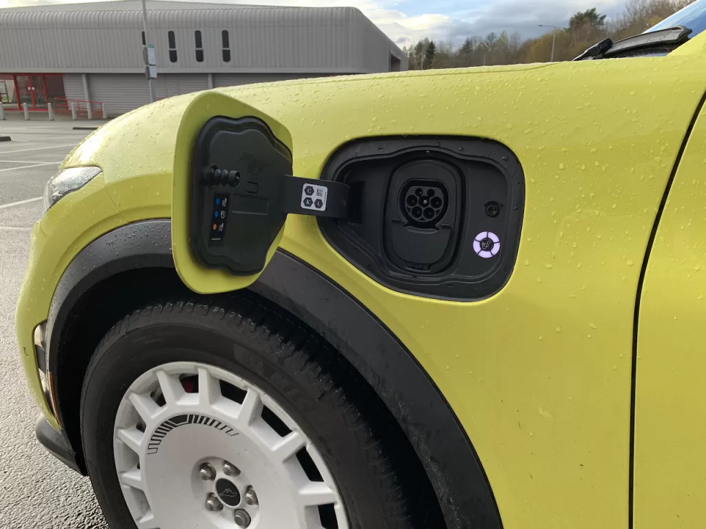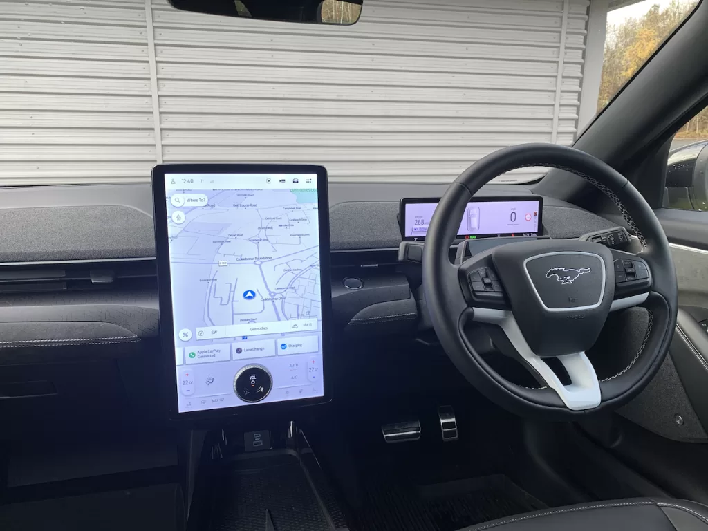 The raised suspension and retuned dampers make a noticeable difference. Where the regular Mach-E GT can feel firm over broken surfaces, the Rally takes the edge off. It’s still taut — this isn’t a sofa on wheels — but it copes better with ruts and potholes. On the motorway, it settles into a relaxed cruise, with minimal wind noise and only a faint hum from the chunky tyres. Road noise is up compared to a standard Mach-E, but not enough to spoil the refinement.