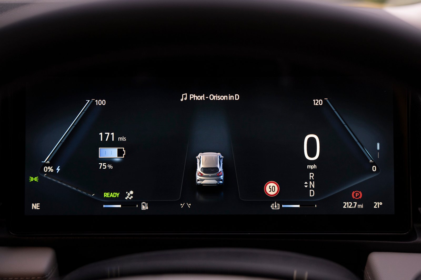 It all looks impressive enough and matches the ICE versions, pretty much everywhere. Yes, there’s a wireless phone charger too and the squarcle steering wheel feels nice in the hands.