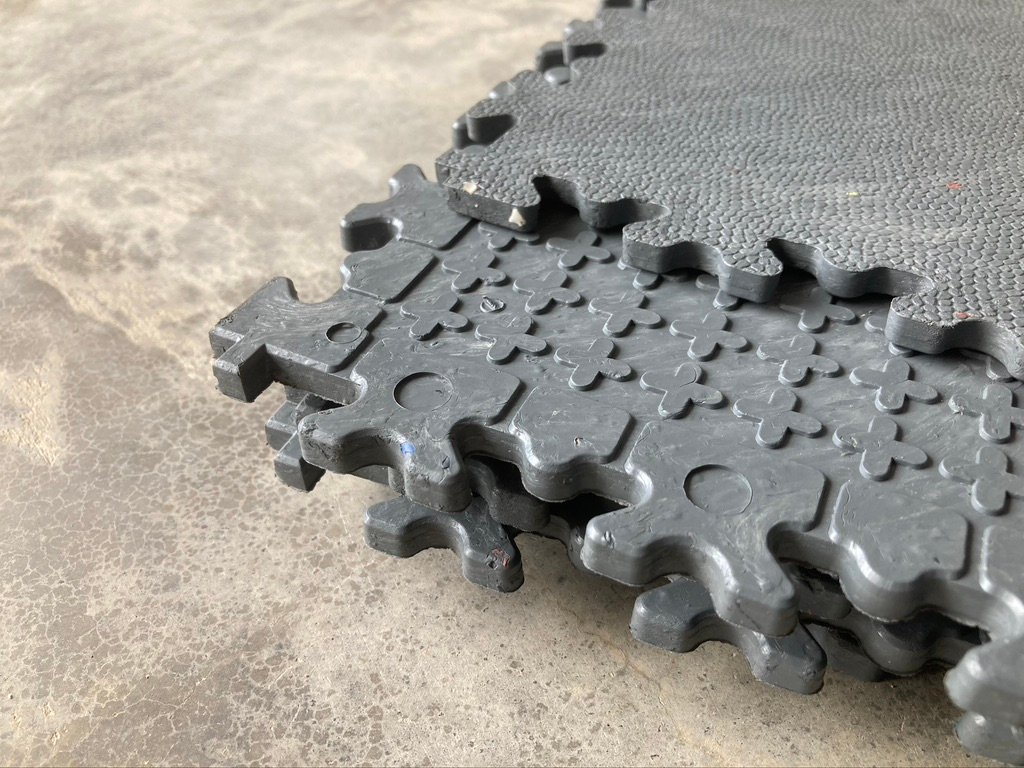 This part was very quick as all you need to do is line up the locking tabs and tap them flush with the mallet. You don’t even need to take time lining up the tiles perfectly – anywhere near and the mallet just knocks them into place.
