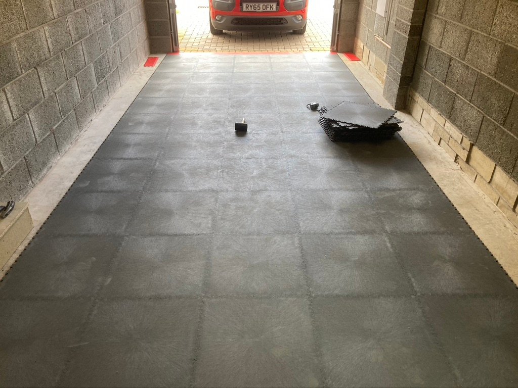 Other benefits, over paint, are extra sound and heat insulation as well as a more robust slip-proof surface. You also don’t need to wait days for it to dry between coats; the garage is usable as soon as you’ve finished laying the tiles. And if a tile should get damaged beyond repair (if that’s possible) then just lift it out and replace with a fresh one. No need to take the whole floor up.