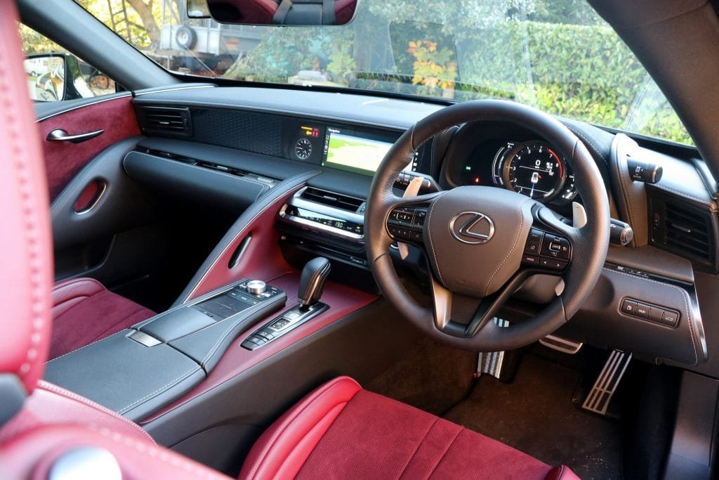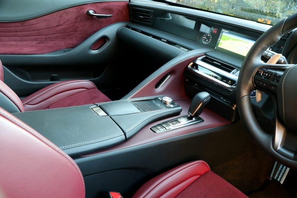 Flicking open the flush-fitting door handle and dropping into the LC 500h’s Alcantara Sports Seat won’t cause you a problem as although the LC 500 is low, the large doors open nice and wide and there is plenty of room to swing a leg in first.