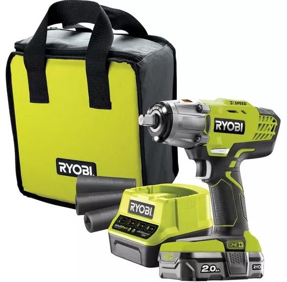 HALFORDS provide the Ryobi 18V ONE+ Impact Wrench Starter Kit for just £142.99 which features the model mentioned and comes with a 2.0Ah battery, charger, 3 impact sockets (to cover most wheel nut sizes), a 1/4in hex adapter and a canvas carrying bag. As with all Ryobi tools there is a 3-year warranty available and the ONE+ battery can be used in a wide variety of compatible Ryobi tools.
