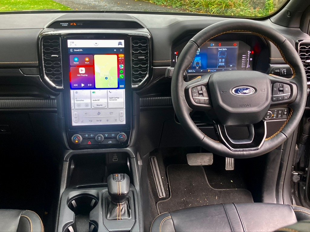 At well over 2-tonnes it hides that weight very well and the drivetrain pulls you along nicely without ever feeling overwhelmed. The 10-speed auto box has plenty of ratios so the Ranger pushes on very smoothly indeed with no “dumbness” to the gear-changes. You can select gears manually by pressing the M button on the side of the selector and then using the + and – buttons to make more work for yourself. Why bother?