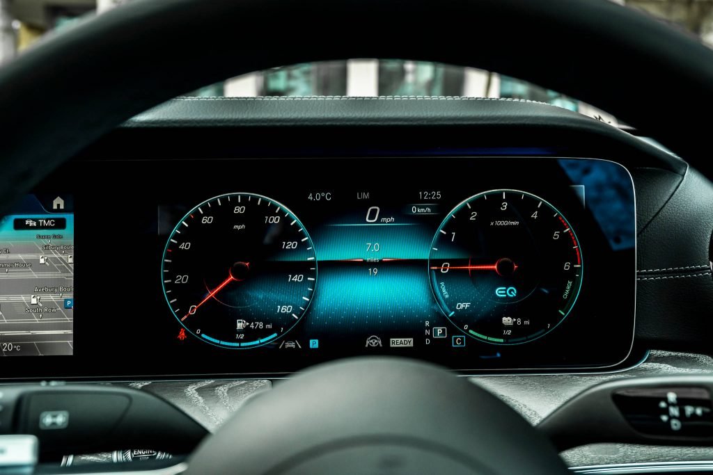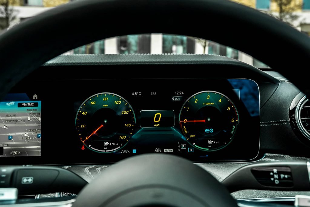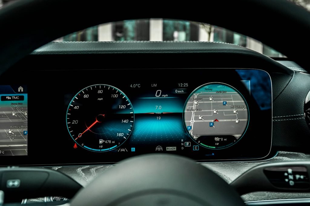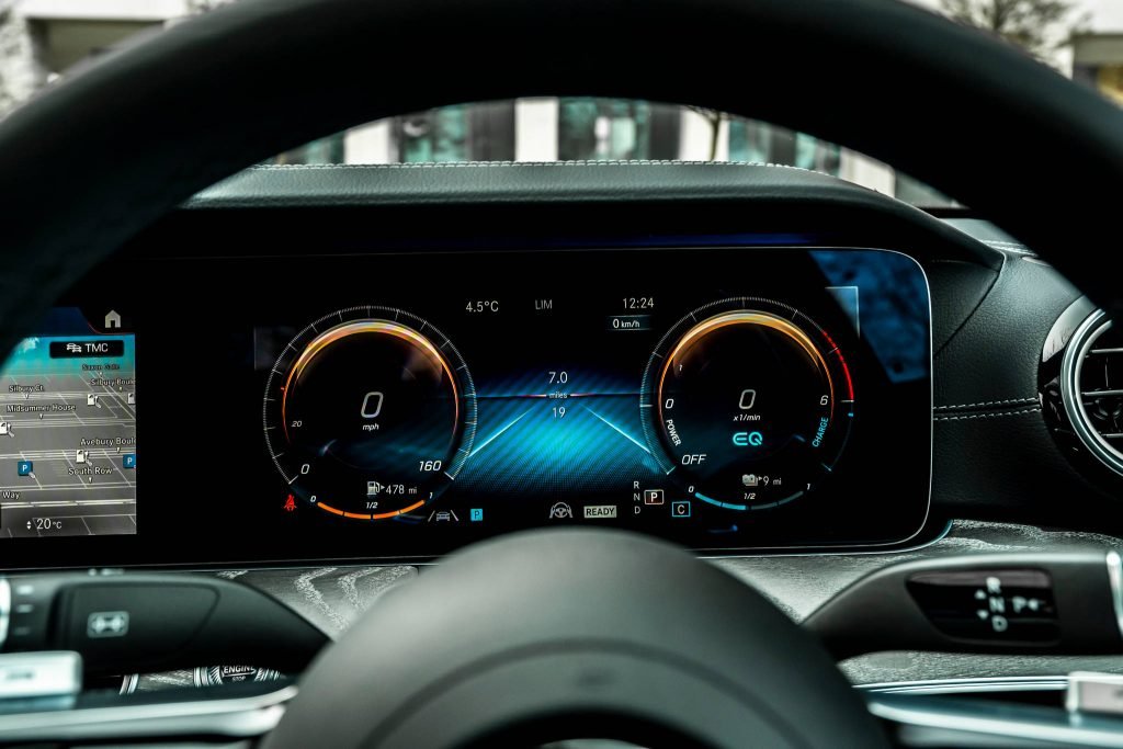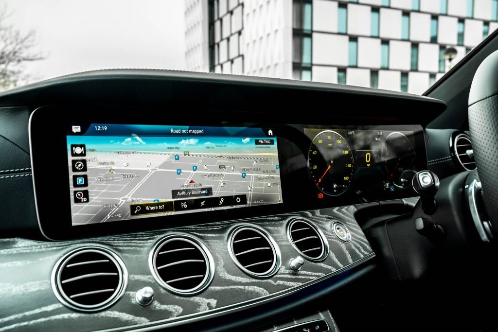 Of course, the most striking feature of the cockpit are the two 12.3in screens that give a true “Widescreen” effect across the dash and are new to the E-Class. The information in the instrument cluster and on the media display is easily legible on the large, high-resolution screens.