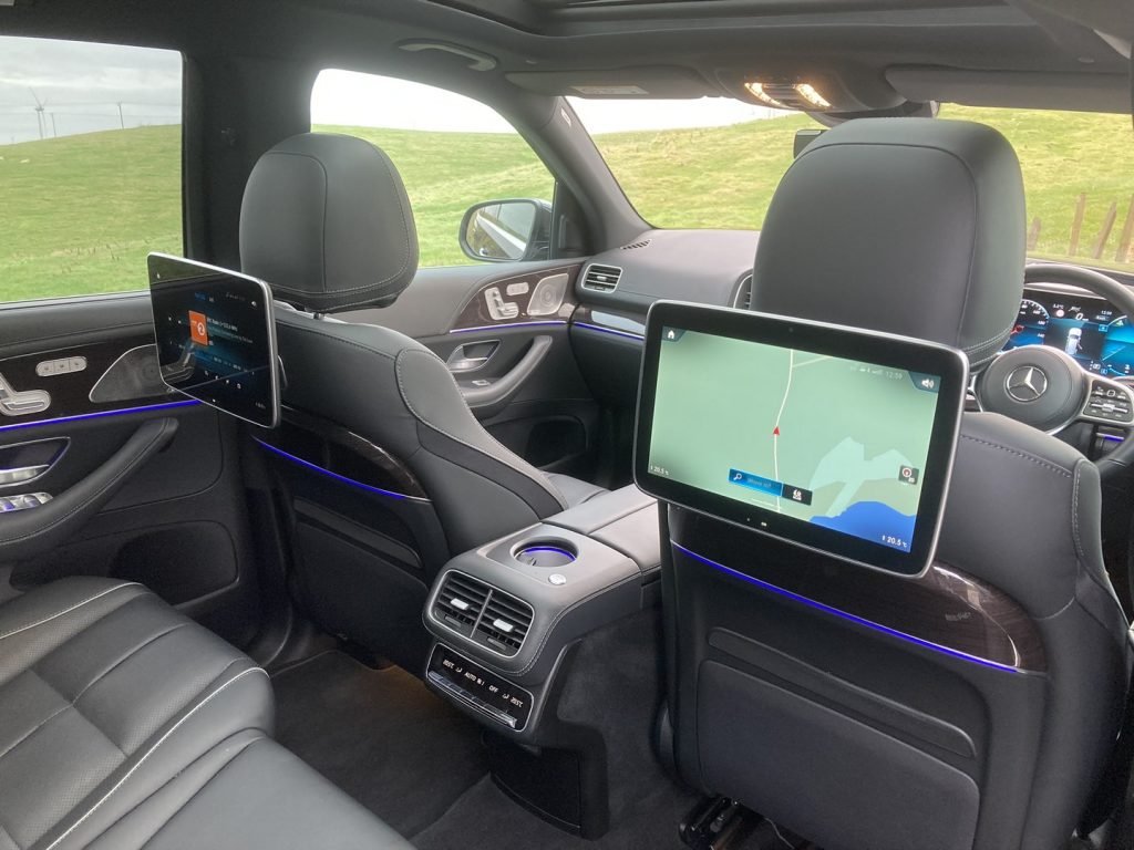 Rear passengers will find a pop-out tablet in their centre-armrest that can also control everything from media selection to opening or closing the rear window-blinds, as well as search the web or change the ambient lighting. Although my model also had individual tablets mounted on the rear of the front seats. Brilliant for keeping business associates up to date – or more likely to keep the kids quiet.