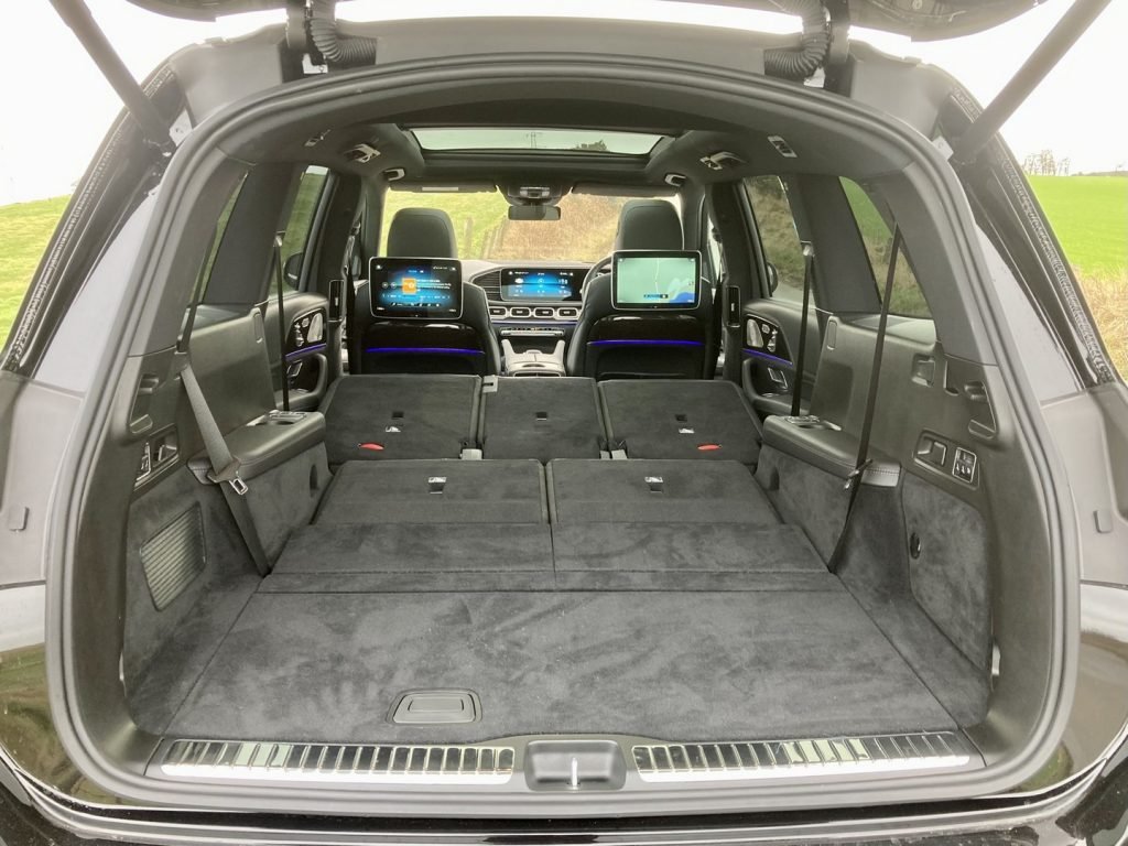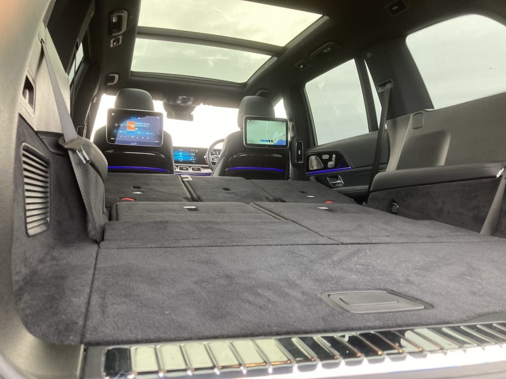 However, with greater size comes greater space and practicality. The Mercedes GLS takes full advantage and not only provides unrivalled comfort for its centre-row passengers but also boasts 2 of the comfiest seats 6 & 7 you’ll ever find in an SUV. Access and egress to these rear-most seats is also much less of a faff with the clever use of power-folding centre seats and a decent space to ultimately step into.