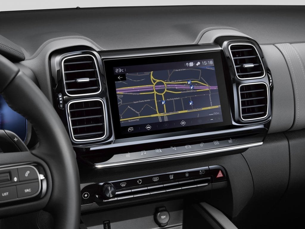 New C5 Aircross SUV Hybrid can be specified in two well-appointed trim levels, ‘Flair’ and ‘Flair Plus’, with all models enjoying standard equipment including: Citroën Connect Nav with 3 year subscription to TomTom® Live Traffic, active blind spot monitoring, active lane keeping assist, active safety brake, front and rear parking sensors and a 180° colour reversing camera. In addition, ‘Flair Plus’ models boast a half-leather interior, an electric driver’s seat, a motorised hands-free tailgate, active cruise control and 19-inch ‘Art’ bi-tone alloy wheels.