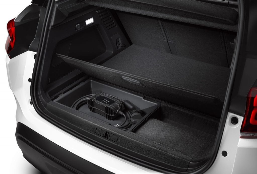 - Storage compartment (with hinged cover) for storing the charging cable under boot floor