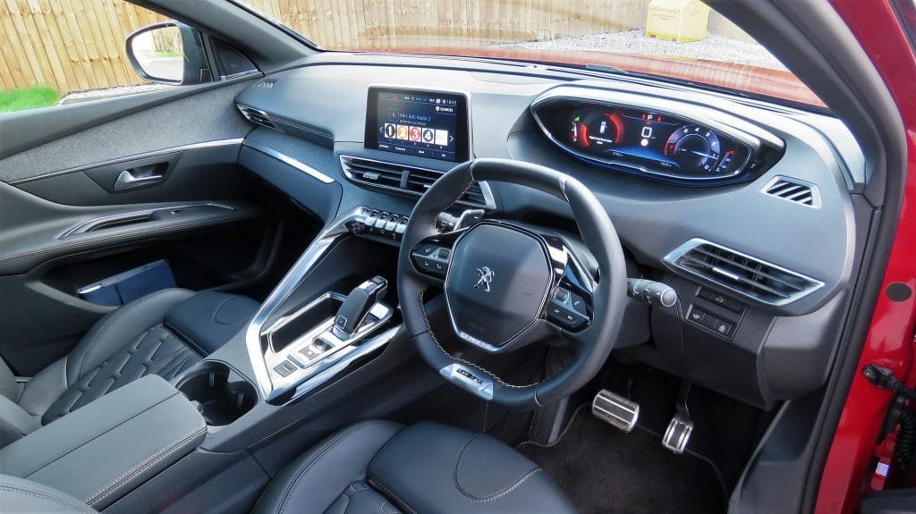 My particular car was the 3008 GT Line Automatic fitted with the 131bhp 1.2 PureTech petrol engine and included the option of Nappa Mistral leather trim with Aikinite double-stitch detail which looks beautiful and feels very premium indeed. The driver’s seat also gets 8-way electrical adjustment and a wonderful multi-point massage function – but at £1,790 it may be a luxury you can live without.
