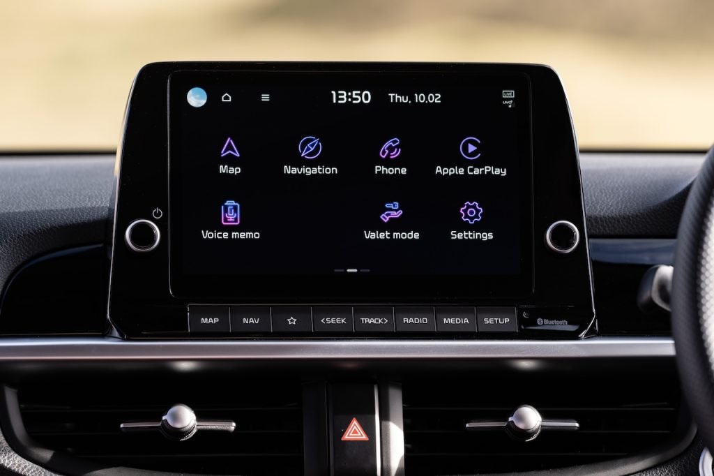 Upfront and central there is an 8-inch ‘floating’ touchscreen, giving access to the infotainment and connectivity systems, which include DAB radio and Android Auto and Apple CarPlay. The screen looks just like the one in you’d get in Kia’s more expensive offerings and is easy to navigate around with sharp, clear icons.