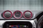 The steering wheel manages to look special with its perforated black leather, stitched in red and has more chrome surrounding the multi-function buttons and lower spoke. The circular air-vents are all outlined in a metallic red, as is the centrally mounted, large analogue clock which looks classy.