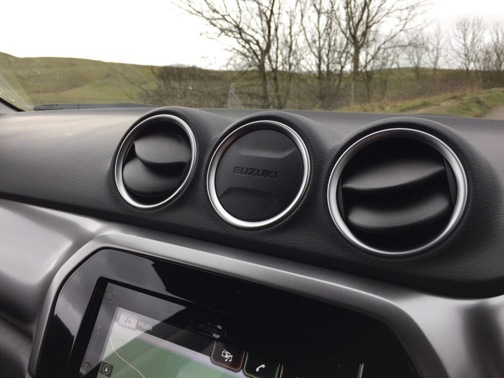 On the motorway the 3-cylinder has no problem at all keeping up with traffic and apart from some wind noise from around the wing-mirrors the Vitara is surprisingly quiet. I found the 5-speed manual gearbox presented no problems at all and I’d recommend it over the 6-speed auto as you do lose some performance and economy with the latter.