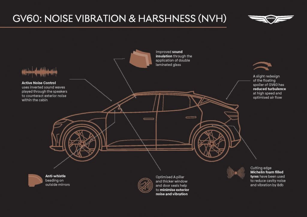 Genesis actually has a Head of Noise, Vibration and Harshness; he’s called Christopher Mills and he explains: “The absence of traditional feedback provided by an internal combustion engine means that many customers come away from driving an electric car feeling that it lacks character. Our E-ASD technology provides customers with the choice to reintroduce a soundtrack to match GV60’s dynamics.”