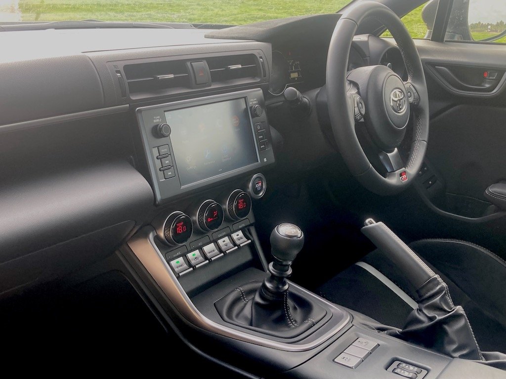 The unforgiving ride of the old GT86 has gone, to be replaced by firm, but pliable suspension that induces confidence and a big smile. The 7,500rpm rev limit looks tempting and the growl is satisfying as you make your way toward it – even though it is augmented. The Michelin Pilot Sport 4 tyres do a brilliant job of avoiding the ditches and as I flick through the 6-speed gearbox I’m amazed at how light but planted the GR86 feels.